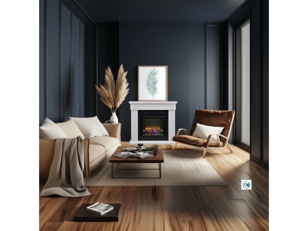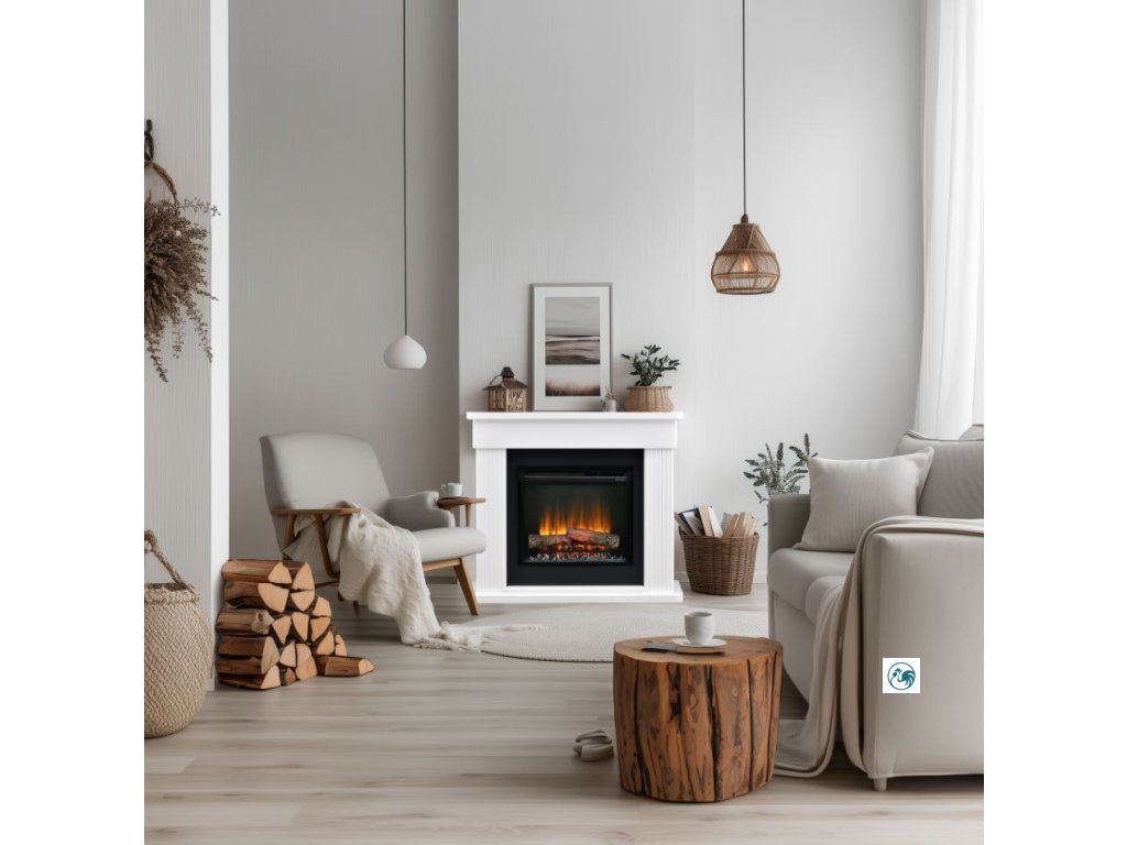 - Barva ostění krbu: Bílá