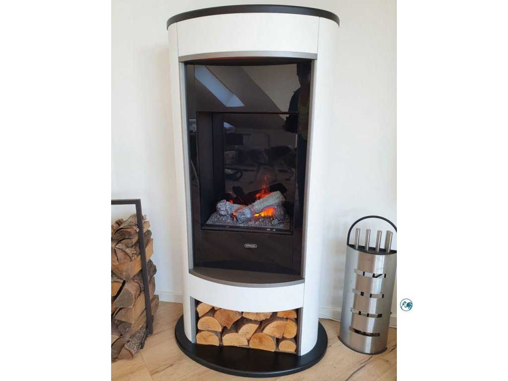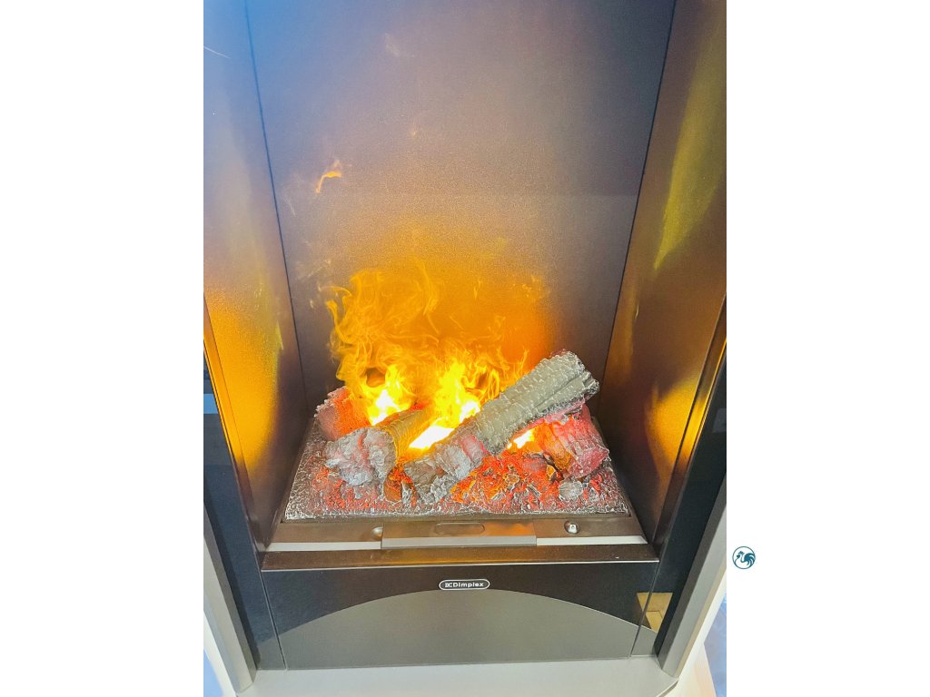 Elektrický krb s technologií OPTIMYST. Reálný dým tvořený vodní párou věrně imituje hořící oheň. Patentovaný 3D efekt zaručen.